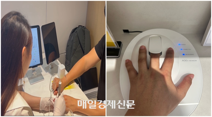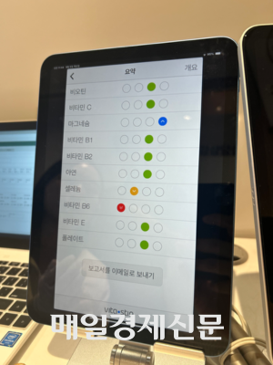 현대백화점그룹 계열종합식품기업 현대그린푸드는 현대백화점 중동점 지하 1층 식품관에 ‘그리팅 스토어’ 2호점을 오픈하고 개인 맞춤형 헬스케어 서비스 ‘그리팅 버틀러’를 처음 선보였다. 사진은 5일 오전 현대백화점 중동점 ‘그리팅 스토어’ 모습. [변덕호 기자] “셀레늄과 비타민 B6 섭취가 부족하네요. 나트륨 섭취는 과다한 편으로 줄이시는 게 좋겠어요.”병원이나 전문 의료시설에서 진행된 건강 상담이 아니다. 건강 증진을 목적으로 찾은 헬스장은 더더욱 아니다. 기자가 영양 상담을 받은 곳은 바로 현대백화점 중동점 식품관이다.5일 오전 방문한 경기 부천 현대백화점 중동점 지하 1층 식품관 내 ‘그리팅 스토어’. 이곳에선 식품관을 찾는 고객을 대상으로 영양 상담을 진행하고 있었다. 진단 결과를 토대로 식단 계획까지 세워주는데,이 모든 과정에 드는 비용은 ‘0원’이다.현대백화점그룹 계열종합식품기업 현대그린푸드는 현대백화점 중동점 지하 1층 식품관에 ‘그리팅 스토어’ 2호점을 오픈하고 개인 맞춤형 헬스케어 서비스 ‘그리팅 버틀러’를 처음 선보였다. ‘버틀러’는 집사라는 뜻으로,백화점을 찾는 고객들에게 맞춤 영양 상담 서비스를 제공하겠다는 의미가 담겼다.체성분·당독소·미량영양소·피부상태 등 종합적인 영양 상태를 4종의 전문 측정 기기를 통해 진단한다. [변덕호 기자] 검사는 전문적으로 진행된다. 개인 식습관 등에 대한 설문과 함께 체성분·당독소·미량영양소·피부상태 등 종합적인 영양 상태를 4종의 전문 측정 기기를 통해 진단한다.먼저 ‘AGEs sensor’라는 장비로 당독소 수치를 파악한다. 당독소란 포도당,과당과 같은 당이 단백질 또는 지방에 결합해 당화된 물질로 노화 시 증가한다.마그네슘,비오틴,셀레늄,엽산,아연,비타민 B1,비타민 B2,비타민 B6,비타민C,비타민 E 등 체내 부족한 영양소를 알려주는 ‘비타스틱’ 검사도 진행한다.체수분과 단백질,무기질,지방을 측정하는 인바디를 사용해 체형을 진단한다.이와 함께 평소 식습관을 진단하는 검사 설문도 병행한다.끝으로 네 가지 검사 결과를 종합해 ‘그리팅 헬스 스코어’를 매긴 후 이에 맞는 맞춤 솔루션을 제공한다.체내 부족한 영양소 진단 결과. [변덕호 기자] 영양사는 고객이 섭취하면 좋을 식재료,반찬,영양제 등을 추천해 준다. 그리팅 스토어나 현대식품관에서 판매하는 상품을 추천해 주기도 한다.특히,현대 그린푸드가 자체 개발한 AI 영양상담 솔루션 ‘그리팅X’를 통해 그리팅 스토어 매장 내 상품 뿐만 아니라 현대식품관 내 신선·가공식품 5000여종을 개인 영양 상태에 맞춰 추천해주는 것이 특징이다.맞춤형 식단의 경우 짧게는 한 끼부터 한 달 이상 장기 식단 제안까지 고객의 니즈에 맞춰 제공한다. 가격은 한끼에 6000~8000원 선이다.기자는 마그네슘과 비타민B6가 부족하다는 진단 결과에 따라 깻잎,현미,낙지,갈치,바나나,닭고기 등 맞춤 식재료를 추천 받았다. 저당·고식이섬유 맞춤 반찬으로 구성된 얼갈이된장국,불주꾸미볶음,돼지고기김치찌개 등을 추천 받기도 했다.현대백화점 중동점 ‘그리팅 스토어’. 매장에선 맞춤형 식단에 맞는 반찬류도 판매하고 있다. [변덕호 기자] 현대백화점과 현대그린푸드는 식품관 차별화를 위해 그리팅 스토어를 론칭했다고 밝혔다. 백화점 식품관 경쟁이 그 어느 때보다 뜨거운 상황에서 콘텐츠로 차별화를 두어 경쟁력을 강화하겠다는 취지다.현대그린푸드 관계자는 “가격으로 승부를 보는 시대는 지났다. 이제는 가치 소비가 더 중요한 시대”라며 “그리팅 스토어는 현대백화점 식품관만이 갖고 있는 유일무이한 콘텐츠로 우리의 무기가 될 것”이라고 말했다.그리팅 스토어가 ‘셀프 메디케이션’ 시장이 커짐에 따른 성장 기폭제가 될 것이라는 설명도 덧붙였다.이 관계자는 “일본이나 미국의 일부 매장에는 영양사가 상주하는 경우도 있다. 이처럼 해외에서는 셀프 메디케이션이 생활밀착형인데 우리나라는 아직 그렇지 않다”며 “그러나 우리가 선도입해서 시장을 키워나갈 수 있을 것”이라고 말했다.한편 현대그린푸드는 이번 중동점 그리팅 스토어를 시작을 판교점을 비롯한 전국 주요 점포에 그리팅 버틀러 서비스를 점차 확대 도입할 예정이다.또한 유선 및 온라인을 활용한 비대면 영양 상담서비스도 개발해 집에서도 간편하게 개인 맞춤 식단을 제공받을 수 있도록 할 계획이다.