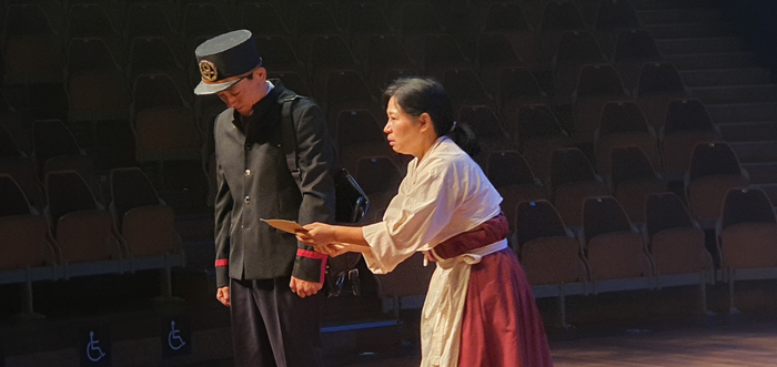 연극 ‘우정만리’의 한 장면. 얘기씨어터컴퍼니 연극은 편지를 모티프로 가족의 이야기를 풀어낸다. 벙거지꾼(우편배달부의 옛 이름) 계동과 체신국(우편 업무를 하던 조선총독부 기관) 직원 수혁,우정집배원 혜주는 3대에 걸쳐 우편 일을 하고 있다.
