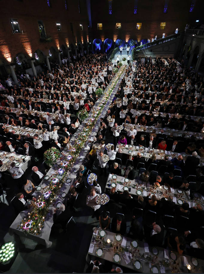 만찬장 로비에 들어서니,참석자 전체 명단과 좌석배치도가 인쇄된 64쪽짜리 소책자가 제공됐다. 1300명이 동시에 식사하기에 본인 자리를 찾기가 ‘미로’에 가까운데,혼란을 방지하고자 노벨 재단이 아예 책자로 안내한 것이었다.