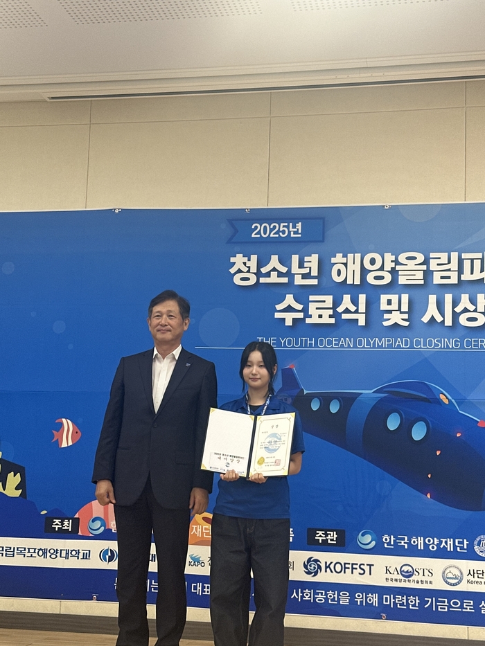 2025 청소년 해양올림피아드 대서양상 수상자인 황서영 학생의 시상 모습 [ 사진 = 넥스트챌린지스쿨 ] 1기 황서영·이승준 학생은 전 세계 2000여 명이 참가한 ‘2025 청소년 해양올림피아드’에서 각각 2등과 4등을 기록하며 창의성과 문제 해결 능력을 국제적으로 인정받았다. 또 신주원,황승현,강지호,남예슬,김찬우 학생 등이 결성한 팀 ‘벤처엑스(Venture X)’는 서울특별시 학교밖청소년센터 창업경진대회에서 장려상을 수상해 현장 중심 창업 교육 성과를 입증했다.