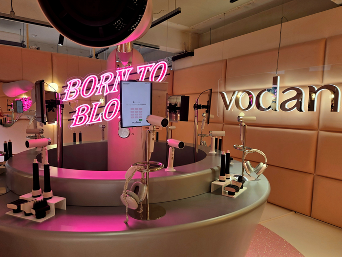 보다나는 19일부터 21일까지 3일간 가수가 무대에 오르기 전까지의 과정을 경험할 수 있는 ‘본 투 블로우(Born to Blow)’ 콘셉트의 팝업 스토어를 진행한다. [김혜진 기자]      글래어 스타일러 폴드는 포터블 모드,드라이어 모드,스타일러 모드 등 세 가지 형태로 전환 가능한 제품으로 네 가지 노즐을 활용해 볼륨,스트레이트,웨이브 등 다양한 스타일링을 연출할 수 있는 올인원 헤어 스타일러다.백스테이지 공간에서는 ‘글래어 스타일러 폴드’뿐만 아니라 ‘글로우 물결 고데기’,‘이지 업 헤어스타일러’ 등 보다나의 베스트셀러 제품이 준비돼 있다. 마지막으로 메인 스테이지에는 완성한 스타일링을 뽐낼 수 있다. 무대 위 스탠딩 마이크를 활용해 실제 K팝 아이돌이 된 듯한 체험을 즐길 수 있다.