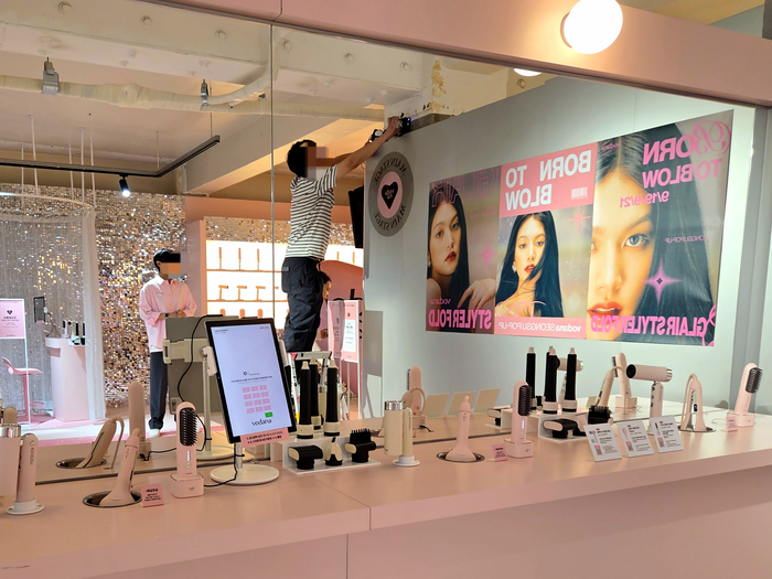 보다나는 19일부터 21일까지 3일간 가수가 무대에 오르기 전까지의 과정을 경험할 수 있는 ‘본 투 블로우(Born to Blow)’ 콘셉트의 팝업 스토어를 진행한다. [김혜진 기자]      성수동을 첫 단독 팝업 스토어 장소로 선택한 이유와도 관계가 있다. 성수는 K뷰티와 K컬쳐를 체험하려는 외국인 관광객과 트렌드에 민감한 소비자들이 가장 많이 찾는 곳이다.서울교통공사에 따르면 성수역의 일평균 승하차 인원은 2018년 5만6000여명에서 지난해 8만8059명으로 57% 급증했다. 내국인 방문객은 2018년 대비 31% 늘어 2600만명을 넘어섰고,외국인 관광객은 같은 기간 6만명에서 300만명대로 대폭 늘어났다.남성 및 시니어 고객을 겨냥한 제품군도 강화 중이다. 이 관계자는 “올해 초 충전식 다운펌 기기를 출시했고,이번 글래어 스타일러 폴드 역시 남녀노소 모두 쓸 수 있도록 기획했다”며 “앞으로도 다양한 소비자층을 고려한 제품을 꾸준히 선보일 것”이라고 말했다.