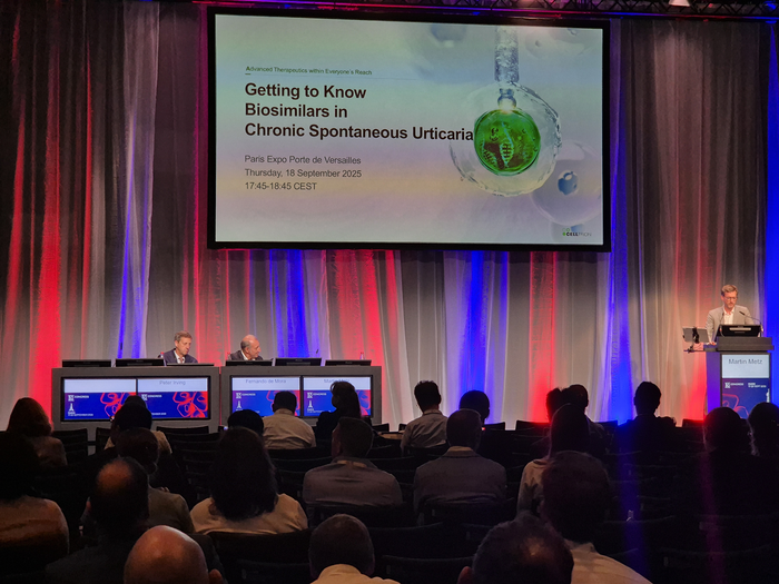 이날 심포지엄에서는 피부질환 영역에서의 바이오시밀러 역할도 논의됐다. 마틴 메츠 독일 샤리테 의대 교수는 “현재 권고되는 만성 자발성 두드러기(CSU) 치료법은 항히스타민제를 최대한 사용하다가 효과가 없으면 오말리주맙으로 넘어가고,이후에도 반응이 없으면 사이클로스포린을 쓰는 방식”이라며 “그러나 현실에서는 고가 등의 장벽 때문에 환자 5명 중 4명은 오말리주맙을 시도조차 하지 못하고 있다”고 말했다.