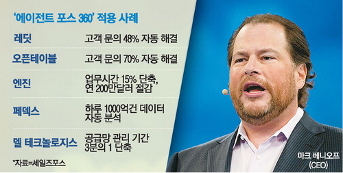 베니오프 CEO는 이날 기조강연에서 에이전트 포스 360의 실제 적용 사례를 대거 공개했다. 덴마크 보석 브랜드 판도라는 대화형 제품 추천과 결제,매장 예약까지 한 번의 대화로 처리하는 AI를 적용했다. 세일즈포스는 이날 오픈AI의 챗GPT와 앤스로픽의 클로드 등을 세일즈포스에 탑재해 고도화된 분석 기능 등을 제공할 예정이라고 했다.