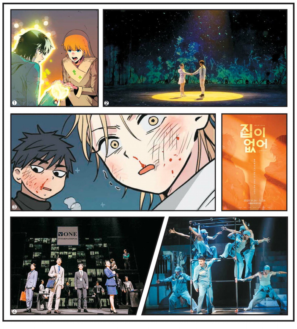 2025년 연말,인기 웹툰 '나 혼자만 레벨업'과 '집이 없어'가 서로 다른 매력의 뮤지컬로 잇달아 관객을 찾는다.