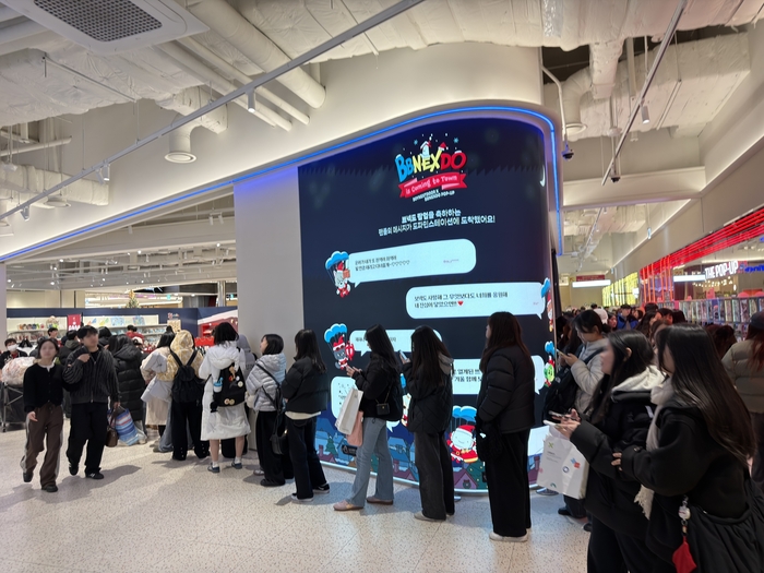 아이파크몰 도파민 스테이션 내 쁘넥도 팝업스토어 전경 [아이파크몰 제공] HDC그룹 HDC아이파크몰은 지난달 28일 도파민 스테이션에 선보인 보이넥스트도어 공식 캐릭터 팝업 ‘BBNEXDO is Coming to Town’ 팝업스토어에 첫 주말부터 많은 팬들이 몰렸다고 2일 밝혔다.