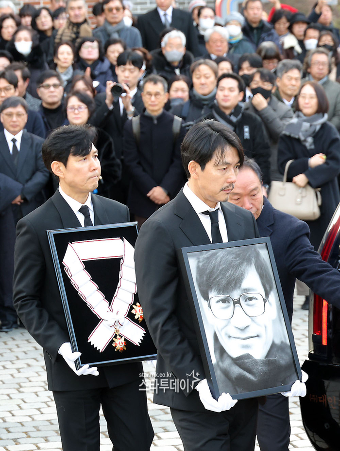 #정우성-이정재,안성기 영정과 훈장 들고