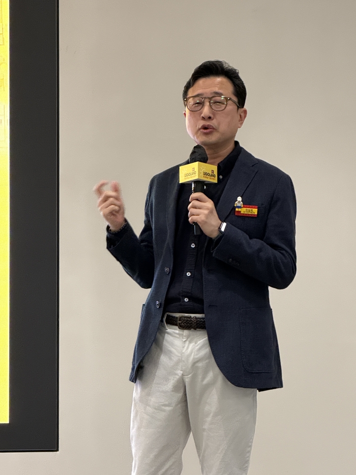 설명하고 있는 이성호 멀린 엔터테인먼트 코리아 대표 / 사진=권효정 여행+ 기자 이 대표는 현재 레고랜드의 위치를 ‘규모와 정체성 모두에서 확장 단계에 들어선 시점’으로 봤다. 춘천 레고랜드는 전 세계 11개 레고랜드 가운데 세 번째다.
